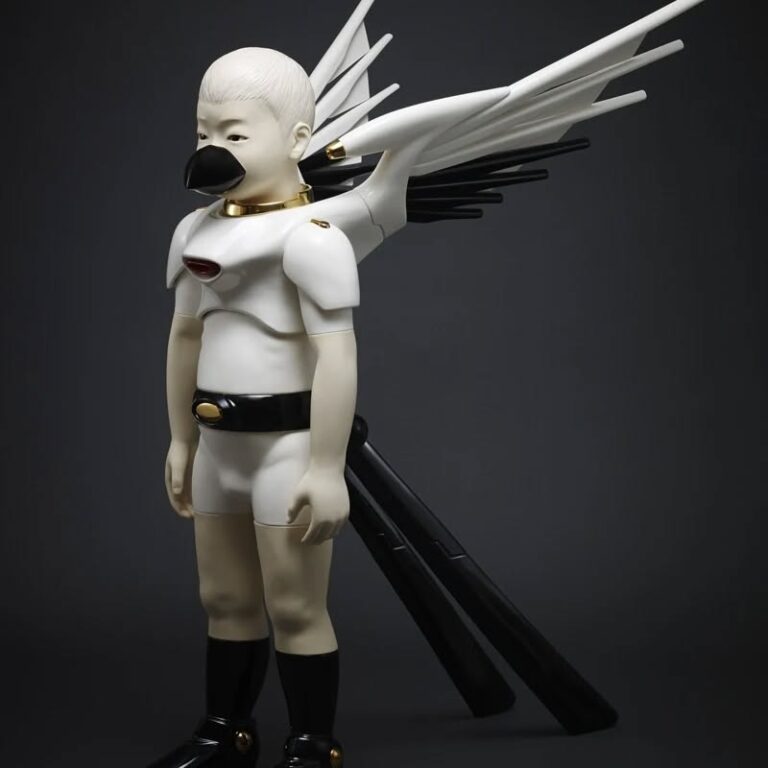 Shigeki Hayashi, nacido en 1972 en la prefectura de Gifu, desarrolla una de las líneas más singulares de la cerámica contemporánea japonesa. Trabaja con porcelana colada, un proceso lento y meticuloso que le permite construir figuras infantiles de acabado impecable, casi industrial. Esa apariencia limpia es el anzuelo: bajo la superficie aparece un cuerpo híbrido, mitad humano mitad dispositivo, que plantea un futuro donde no distinguimos del todo la materia viva de la fabricada. Su imaginario nace del anime y el manga que marcaron su infancia, pero su obra va más allá de la cultura pop. En cada figura se intuye una reflexión sobre identidad, tecnología y vulnerabilidad. Hayashi utiliza la fragilidad de la porcelana como paradoja: los “niños-máquina” transmiten solidez mecánica, pero siguen siendo frágiles, como si el avance tecnológico no eliminara la condición delicada de lo humano.